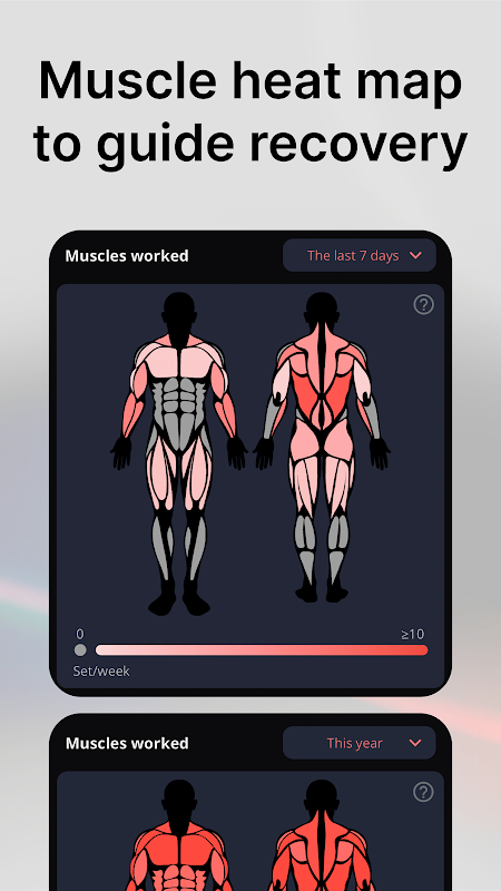 * Çalıştırılan kas anatomisi haritamız, belirli bir süre içinde kas gruplarınızı nasıl çalıştırdığınızı gösterir.