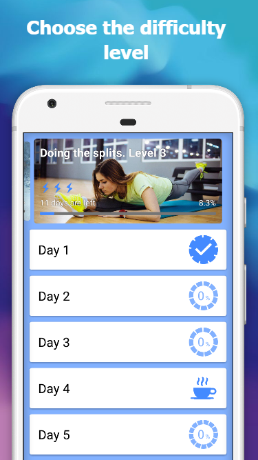 30 günlük egzersiz programı, uygulamada fitness seviyenizi seçebileceğinizden, farklı fitness seviyelerine sahip erkekler ve kadınlar için uygundur.