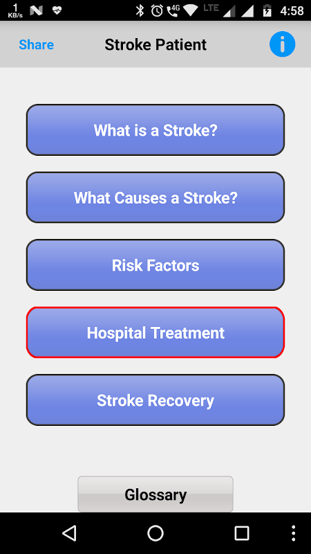 Stroke Patient (App) contains general information about stroke conditions and treatments. The information provided is for educational purposes only. The information is not advice and should not be treated as such. You must not rely on the information in the App as an alternative to medical advice from your doctor or other professional healthcare provider. The App cannot be a substitute for the advice of a medical professional.