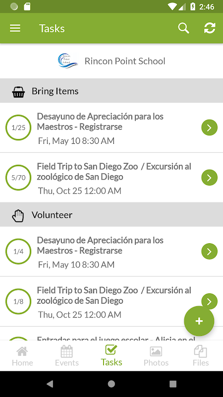 - Okul ve sınıf takvimlerini ve etkinlikler için RSVP'yi görüntüleyin