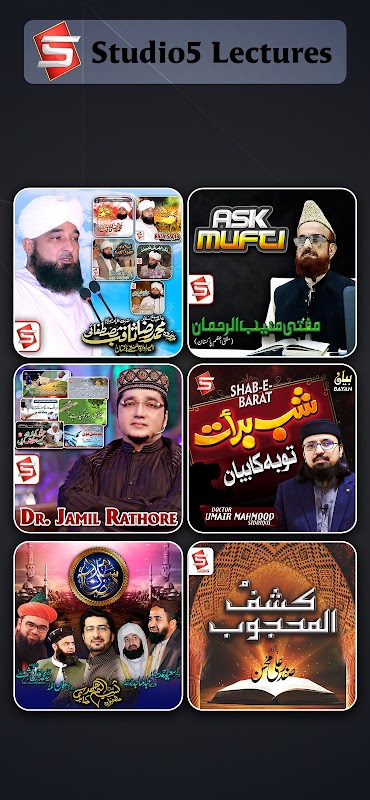 Studio5, geleneksel İslam'ın değerlerini ve maneviyatını en iyi modern profesyonellik ve rahatlık ile birleştirmeye adanmış, geniş bir İslami içerik kataloğuna sahip Pakistan merkezli bir İslami plak şirketidir.