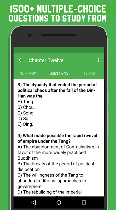 Çalışma AP Dünya Tarihi her bölümün en özetleri, bilgi yarışması soruları ve anahtar terimlerin kapsamlı bir derleme sağlar. Eğer bir bölüm geride konum ya da bir şey hatırlamıyorum, sadece kısa bir özet gözden geçirin. Hatta gerçekten zor gece gözlerde kolay bir Gece Modu ile birlikte geliyor.