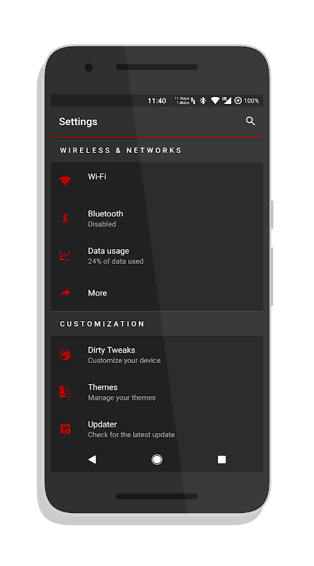 This theme provides a beautiful, cool blue and steaming, hot red accent on a nice, dark grey background to leave you with the feeling of a totally new device!