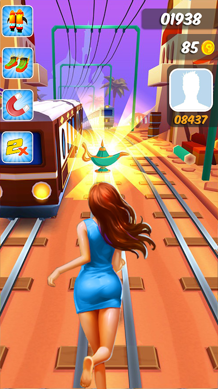 Please help a princess become one of the surfers on the subway. He must surf on the subway to find coin and magic items (shoes, copters, magnet ...).