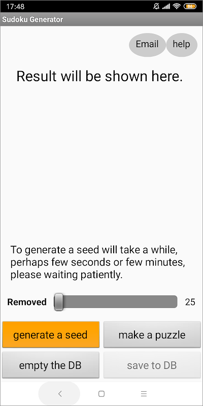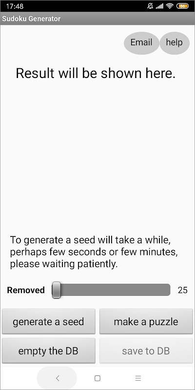 2. Farklı zorlukları belirleyerek sudoku tohumundan bulmacalar yap. Zorluğa 25'ten 55'e ne kadar sayı çıkarılacağına karar verilir.