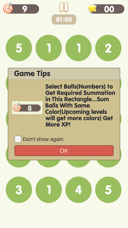 Try to get the summation of Target number from the numbers of the ball for example when the target number is 15 you should select the ball with total 15 (5+6+4). but Do not forget perhaps Running out time before destroy all balls.