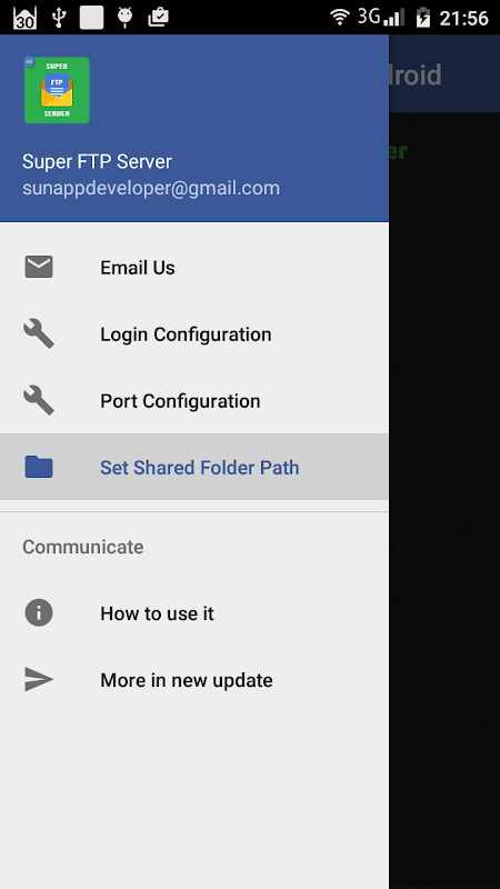 entering auto generated Ftp link in the web browser URL bar will allow you to browse the files on your device from a desktop PC, a laptop or any Ftp client applications. You can also specify Shared folder path on your mobile. Thank you for supporting us. Please email us if you encounter any error or bug while you are using this app.