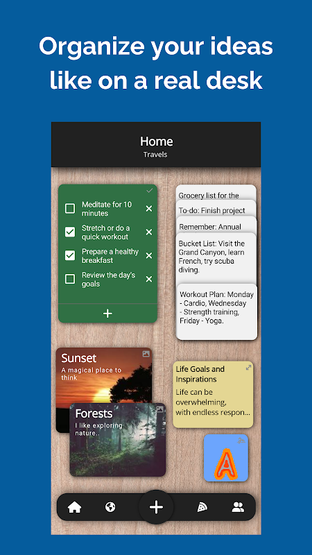 Süper Notlara Hoş Geldiniz! Bu uygulama, notlarınızı oluşturmak ve yönetmek için tıpkı gerçek bir çalışma alanı gibi dinamik ve sezgisel bir ortam sunar. Basit hareketlerle notlarınızı istediğiniz yere taşıyabilir, yeniden düzenleyebilir ve konumlandırabilirsiniz, böylece etkileşimi sorunsuz ve doğal hale getirebilirsiniz.