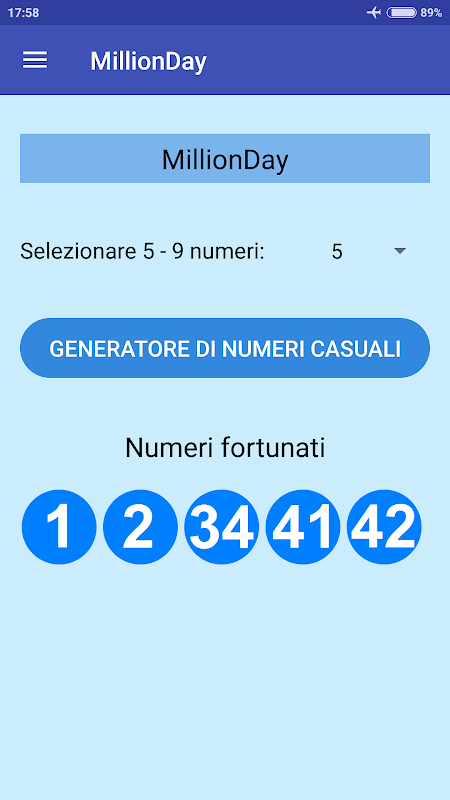Bu ücretsiz uygulama ile SuperEnalotto, SiVinceTutto Vinci Casa, EuroJackpot, Win for Life, SuperEna Max, MillionDay oyunları ve her loto oyunu için rastgele sayılar seçebilirsiniz.