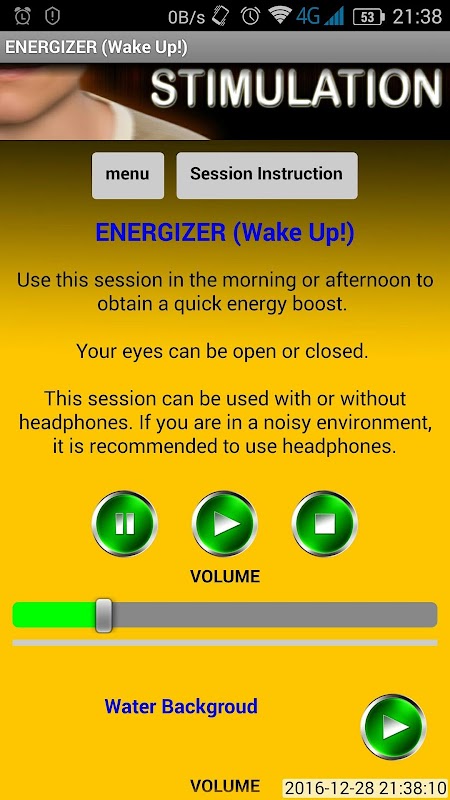 - Kendi Session (Alfa Otomatik Öneri için için, beyaz, pembe, kahverengi Gürültü;; Affirmations veya Hipnoz için Teta Su, Kuşlar, Brainsynchronization Arka Plan)