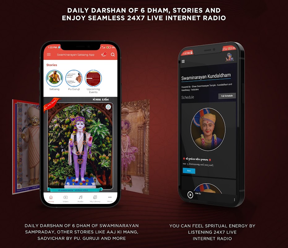 Bu uygulama, ilgi çekici, ilham verici ve otantik Katha (ruhani söylemler), canlandırıcı Kirtanlar (adanmış şarkılar), büyüleyici Dhun (manevi ilahiler), Sadgranths (ruhani Kitaplar), ruhani bloglar, sesli kitaplar ve çeşitli koleksiyonlardan oluşan bir koleksiyona açılan dijital bir kapıdır. 3D Animasyon, Daily Darshan (farklı hac yerlerinin Yüce efendisinin görüntüleri), Shibir-Mahotsav, Chandan na Vagha, Kültürel Programlar, Telefilms, Yatra-Pravas, Awareness, Hindola-Abhishek ve Swaminarayan mezhebinin diğer dijital medyası.