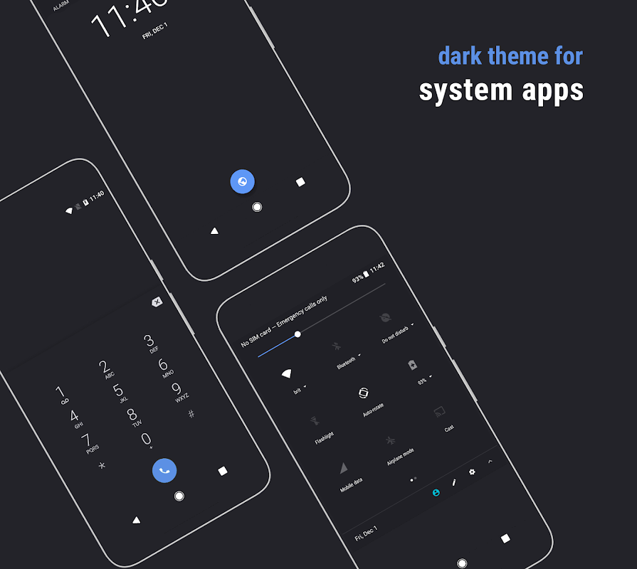- Oreo: Substratum ekibi tarafından aktifleştirilerek temaya geçmek için kök, veya özel bir Sysserv ROM, veya ayrı bir ücretli eklentiye ihtiyacınız olacak ADB üzerinden alt tabaka.