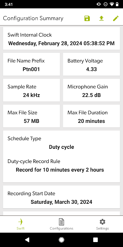 SwiftOne pasif akustik kaydediciyi yapılandırmak için bir araç