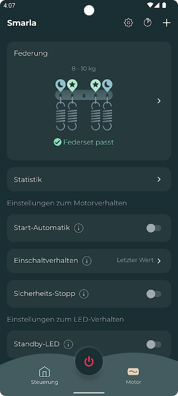 Uygulama, bebeğinizin ağırlık sınıfı için en iyi yay setini önerir. Yay seti çok güçlü veya çok zayıfsa, yeni öneriyi içeren bir bildirim alacaksınız. Uygulama aracılığıyla ayarlayabileceğiniz yay değiştirme modunda yaylar, motoru güç kaynağından ayırmanıza gerek kalmadan kolayca ve güvenli bir şekilde değiştirilebilir.
