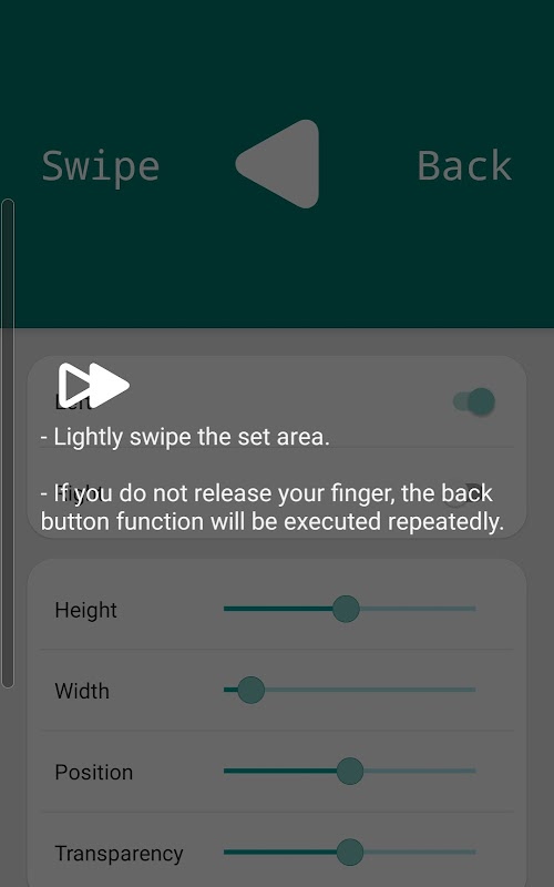 - Parmağınızı bırakmazsanız, geri düğmesi işlevi art arda yürütülür.