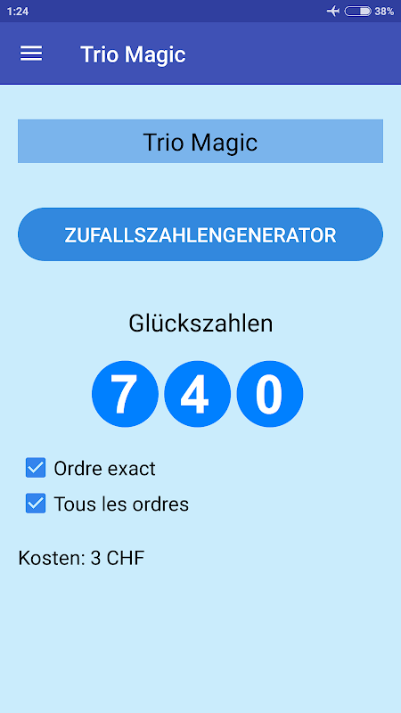 Bu ücretsiz uygulama ile Swiss Lotto, Euromillions, Loto Express, Trio Magic, Magic 4, Banco ve diğer loto oyunları için rastgele sayılar seçebilirsiniz.