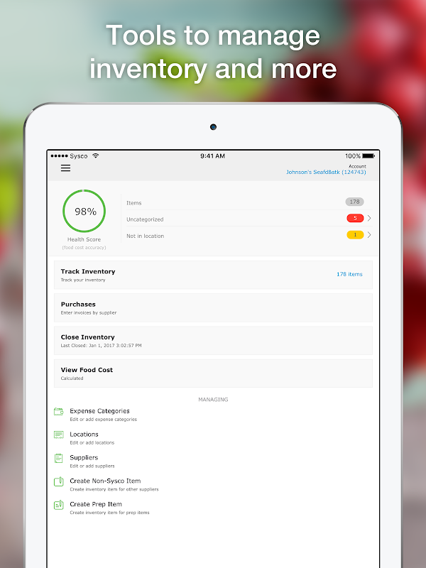 Şimdi etkili yeni Sysco Mobil Envanter uygulaması ile envanter kontrolünü alabilir! Sen, envanter izlemek değişiklikleri izlemek, ve daha iyi kontrol yiyecek ve içecek maliyetleri verimsizliği ortadan kaldırabilir. Yolda operatörler için, Sysco Mobil Envanter gerçek zamanlı maliyetlerinin görünürlüğünü ve anlayış kazanmak yardımcı olur. Sysco Mobil Envanteri karlılığı Sürücü!