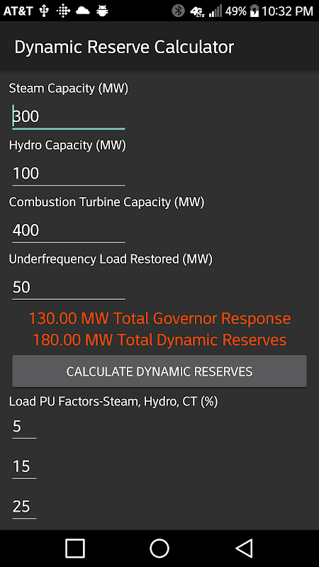Application developed to calculate the Dynamic Reserve within an island during a system restoration. Also has a calculator to figure load shed amount to restore frequency to 60 Hz. Although results are believed to be accurate, this tool is for training purposes only. Can be used to compare your answers when solving reserve calculations by hand. The application is ad free and requires no special permissions. Dynamic Reserve is the amount of reserve that is available in order to preserve the system during a frequency disturbance.