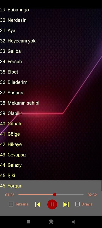 Sırayla çalma ve tekrar etme özellikleri mevcut.
