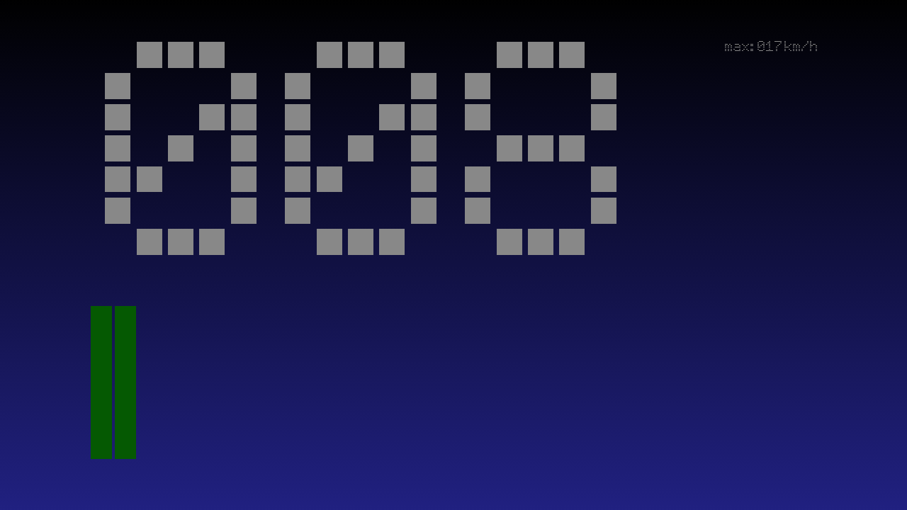 Simpler Tachometer, speziell für österreichische Geschwindigkeitsbegrenzungen. Die Anzeige ändert die Farbe bei den in Österreich gängigen Geschwindigkeitsbeschränkungen (30, 50, 100, 130 km/h).