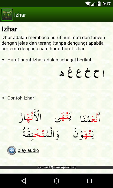 Uygulama Tajweed ses / Ses örnekleri ile donatılmıştır
