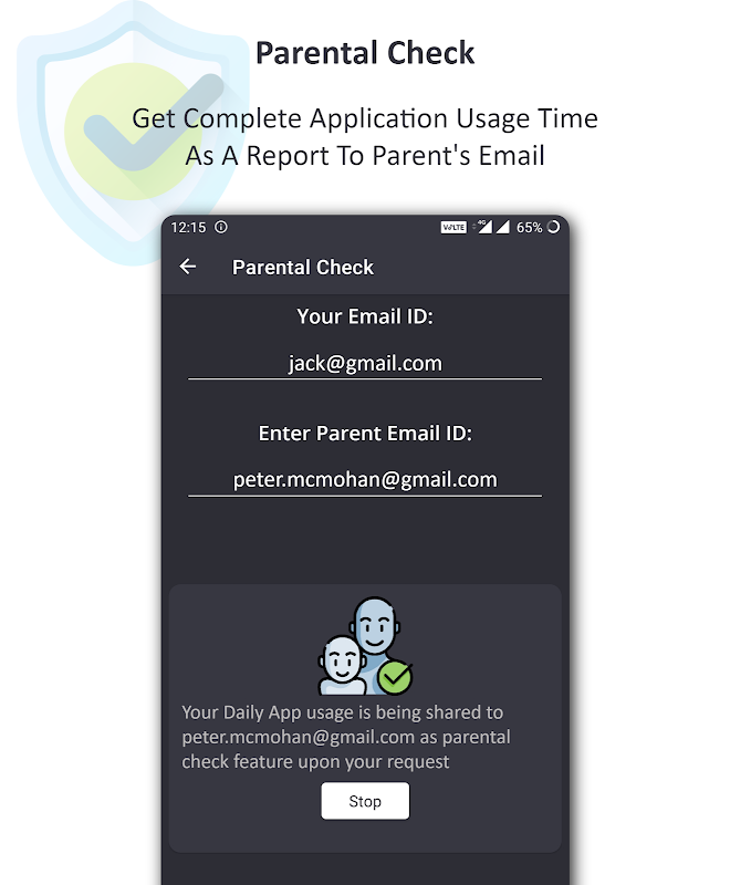 Uygulamayı Çocuğunuzun cihazına yükleyin ve kendinizin (ebeveyn) e-posta kimliğini ayarlayın ve her uygulama için çocuk kullanım süresini alın. Herhangi bir uygulamanın aşırı kullanımı için onları durdurun.