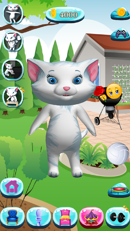 Sevimli konuşan kediniz diş fırçalarken veya duş alırken ona yardım etmenizi istiyor. Çok gayretli ve yatmadan önce banyoda her şeyle ilgilenmek istiyor. Oyun alanında eğlenmek onu çok yorgun yaptı ve iyi bir gece uykusu için can atıyor. Onun için ışığı kapatmak için kornanın üzerine dokunmalısın, ve onun uyuduğu sadece birkaç saniye sürecek. Zinde kalmak istiyor ve iyi görünmesi onun için çok önemli. Bu yüzden bu sevimli konuşan kedi koşu bandında çok zaman harcıyor. Onun hızına ya da koşup koşmayacağına veya yürümeye karar verebilirsiniz. Evi o kadar süslü ki kendi spor salonuna bile sahip. Gecikmesini dürtme tepkisi çok komik, bu yüzden denemeye ve gülmeye dikkat et. En son Talking Cat oyununu alın ve bir daha asla sıkılmayacaksınız.