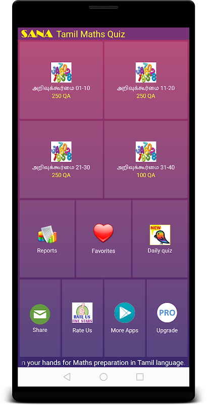 İşte Yetenek bütün Tamil dilinde testleri, Tamilnadu öğrencileri Matematik sınavını, öğrenmenize yardımcı olur Sana Edutech eğitim serisi yenilikçi bir uygulamayı sunulması. Türünün ilk ilk dil olarak Tamil ile herhangi bir rekabet sınavına hazırlanan öğrenciler için adanmış İşletmesi.