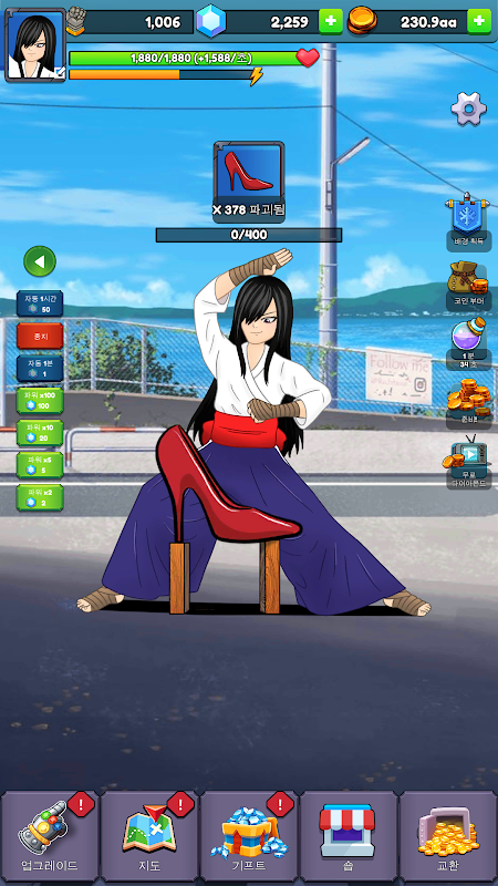 Anime karakterinizin el gücünü, sağlığını, hızını ve kahraman gücünü geliştirmek için altınızı kullanın,