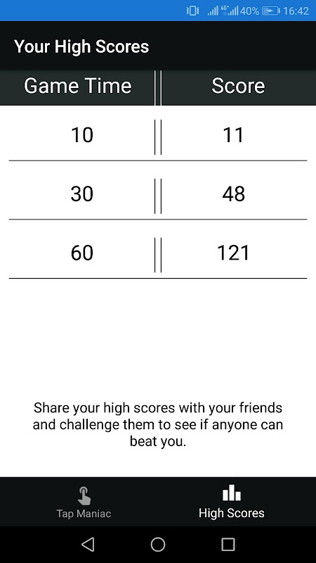 Test your tapping skills with this simple game. Try to get the highest score possible for each time category.