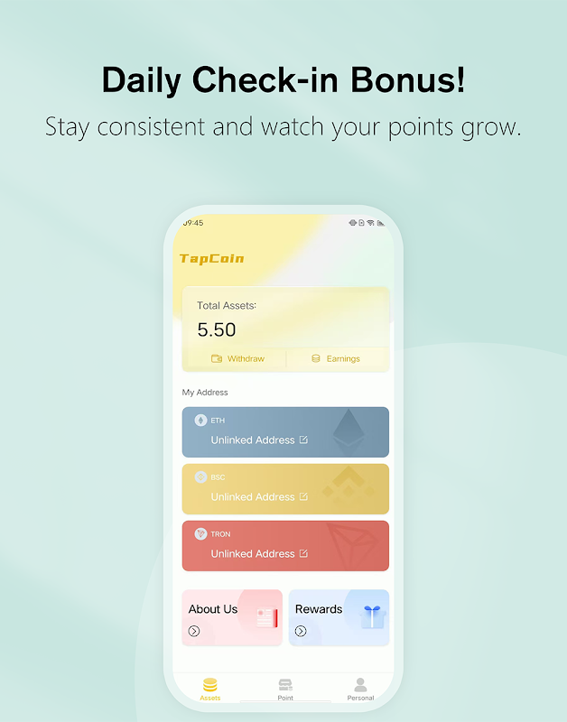 TapCoin, günlük görevleri tamamlayarak, reklamları izleyerek ve oturum açarak puan kazanmanızı sağlayan basit ve eğlenceli bir platformdur. Ethereum, BSC ve TRON dahil olmak üzere birden fazla blok zinciri cüzdanı desteğiyle puanlarınızı büyük dijital ödüller için kullanın.
