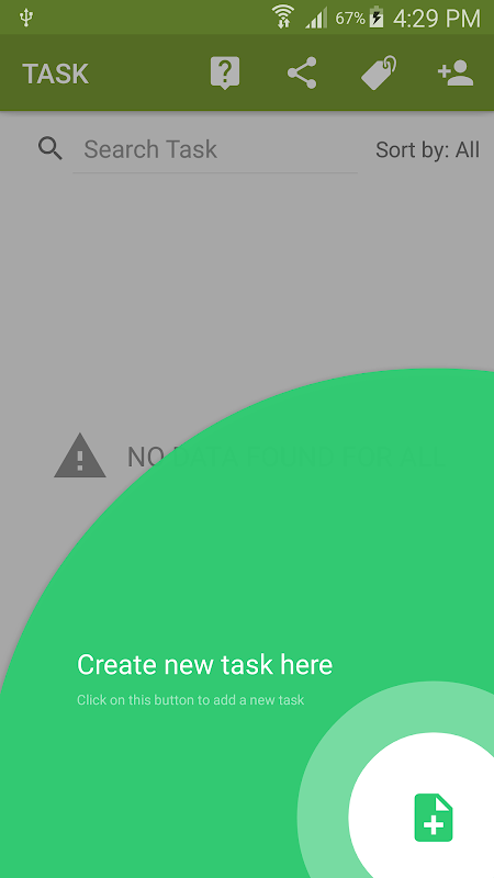 Click on circular button with plus sign on the right side bottom of TASK Screen.