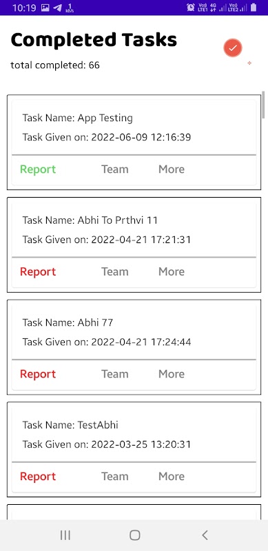 5. Raporlanan görevler yeşil, bildirilmeyen görevler kırmızı renkte görünür