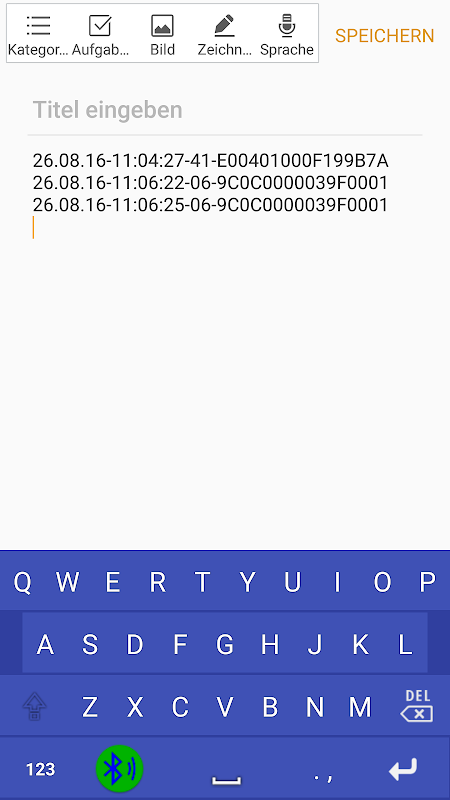 This App captures external Bluetooth® data (UID ,data and time) from the TECTUS MultiPen Reader and