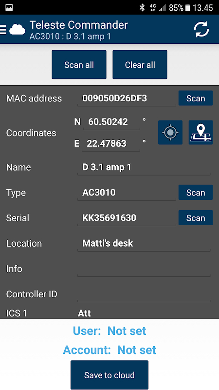 Teleste Commander, Android akıllı telefonlar ve tabletler için bir servis terminali uygulamasıdır. Müşterilerimizin kişisel mobil cihaz aracılığıyla gelişmiş kullanılabilirlik ve yerel yönetim isteklerine yanıttır. Teleste Commander, AC6901 BT adaptörü üzerinden kablosuz bağlantıyı destekler. USB kablo bağlantısı da desteklenir ancak Android cihaz donanımına bağlıdır.