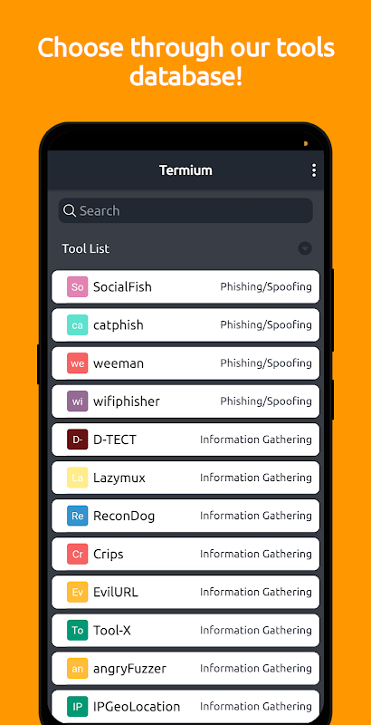Termium is an application that has plenty of open-source tools guides. It's easy to copy and use them on your terminal. You can use these tools if you are a penetration tester or even an ethical hacking enthusiast.