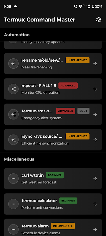 ✅ Kapsamlı Komut Kitaplığı – Termux'un temellerinden (dosya gezinme, paket yönetimi) gelişmiş komut dosyalarına (Bash, Python) kadar bilgi edinin.