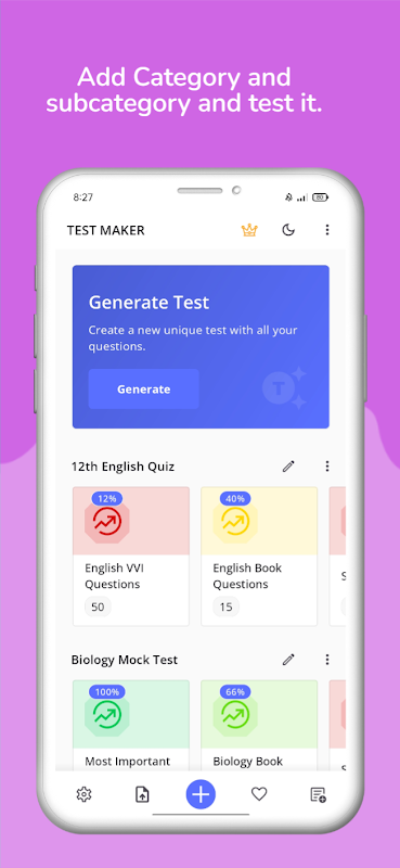Test Oluşturucu veya not oluşturucu, istediğiniz her şeyi test formatında hatırlamanıza yardımcı olacaktır. Sadece sınavın test kategorisi adını girin ve istediğiniz soruları ekleyin. Bu seti tekrar tekrar uygulayarak çalışmalarınızı artırabilirsiniz.