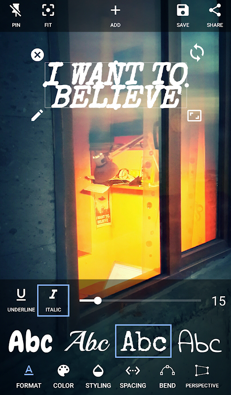 • Move, scale and rotate the text by pinching or by handles
