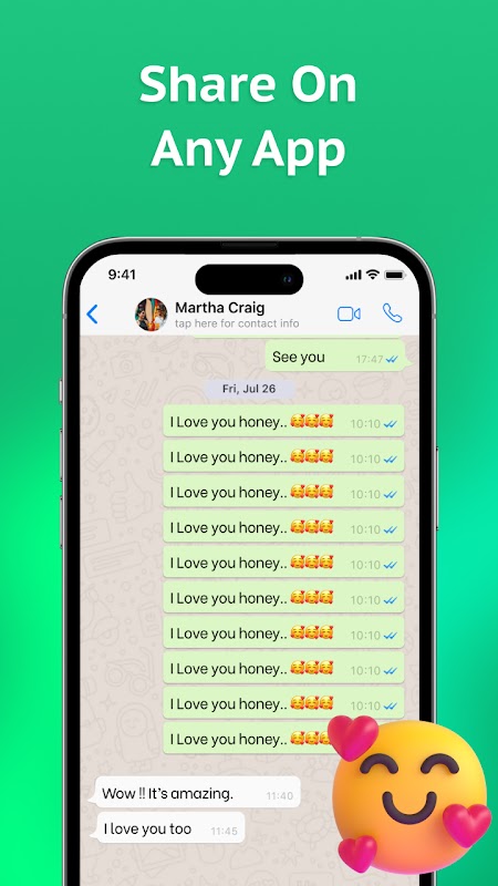 Emoji Tekrarlayıcı ve Güzel Yazı Tipi özellikleri her mesajı canlı ve benzersiz kılar. Duygularınızı yalnızca metinlerle değil aynı zamanda benzersiz ve yaratıcı emojilerle ifade edin.