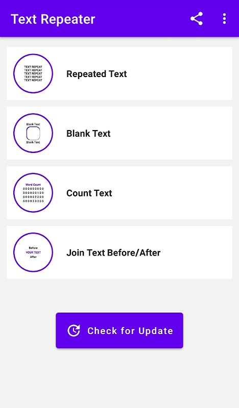 Bir metin parçasını veya bir kelimeyi bir saniye içinde birden çok kez oluşturmanıza ve kopyalamanıza izin veren Mesaj ve Metin Tekrarlayıcı uygulaması.