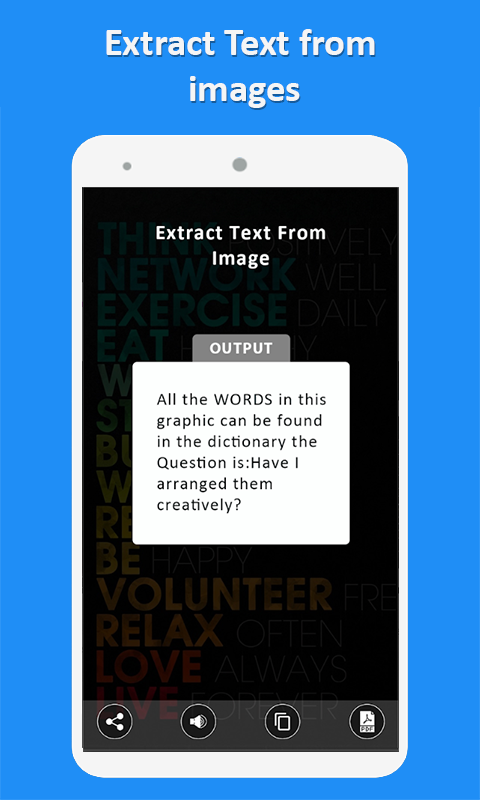 Image to text converter: Text Scanner is the best Text Scanner [OCR]: new image translator app and image to text converter app. This is a fast and text scanner and translator application that will scan text that can later be used either by sending via email, sharing on social media or you can also copy the text in clipboard for later use in any of other apps in your device.