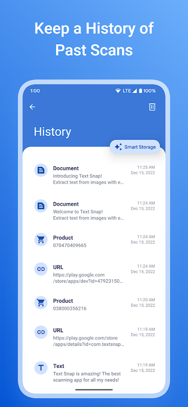 Text Snap, metni doğrudan resimlerinizden doğru bir şekilde çıkarmak için kullanılan gelişmiş bir Optik Karakter Tanıma (OCR) aracıdır! Kameranızdan bir fotoğraf çekin veya galerinizden veya web'den bir fotoğraf alın ve anında doğru sonuçlar alın! Text Snap, çeviri özellikleri, çoklu dil desteği, metin okuma, QR tarayıcı, ürünler için barkod tarayıcı ve daha fazlasıyla birlikte gelir!