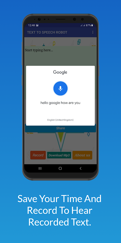 Text to speech robot is designed to minimize the problems you face in attempt of pronouncing the words correctly. Sometimes language differences and the words that sound similar can confuse you with their pronunciations. This app can help you with your accent. It also gives you meaning of mathematical symbols and emojis as well when entered. You can either shake your phone or simply click on 'Speak' button to listen the correct pronunciations of the words you enter.