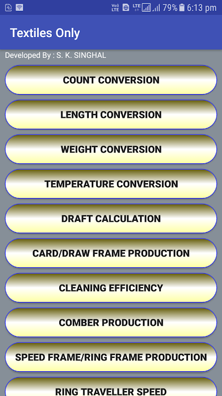 TextilesOnly App hesaplama kolaylaştırmak için tasarlanmıştır. Tekstil öğrencileri, tekstil yeni başlayanlar için yararlıdır. App kullanımı çok basit tutuyor. Uygulamada aşağıdaki hesaplamalar verilir-