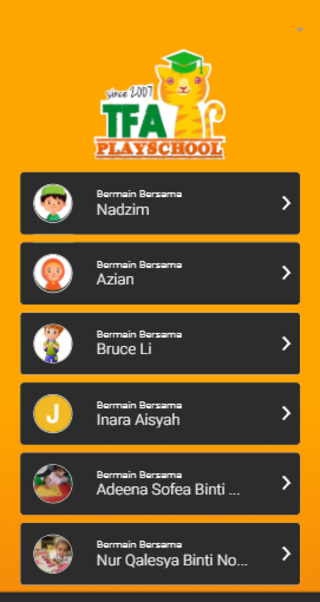 TFA Parent is a collaboration with Anak2U to provide a same application with a different theme according to TFA Playschool.