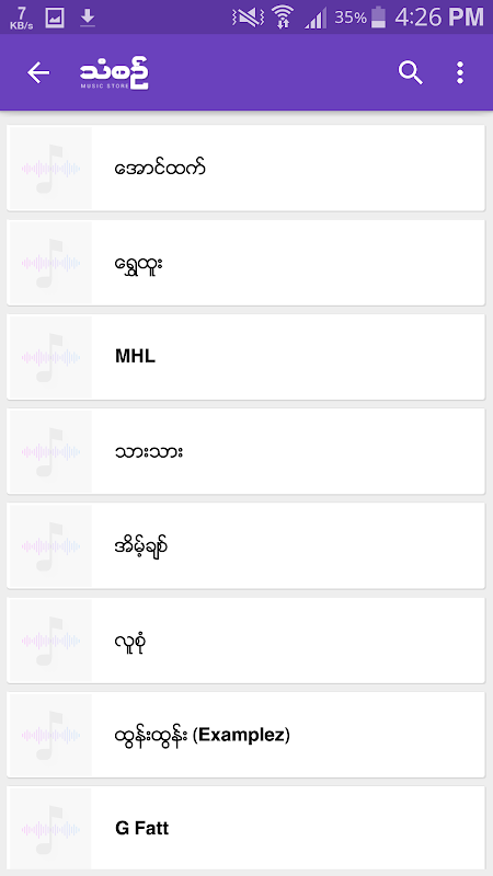 သင့္မနက္ခင္း ေလ့က်င့္ခန္းေတြ၊ သင့္ရဲ႕ေန႕စဥ္လုပ္ငန္းေဆာင္တာေတြ၊ သင့္ရဲ႕ အလုပ္ထဲမွာ စိတ္ဖိစီးမွဳေတြနဲ႕ သင့္ရဲ႕ လွပတဲ႕ညအိပ္ခ်ိန္တုိင္းမွာ သီခ်င္းမ်ားနဲ႕ အတူ သင့္အနားမွာ အျမဲရွိေနမယ့္ သံစဥ္ သီခ်င္း Application။ ျမန္မာ သီခ်င္းေပါင္း (၈၀၀၀) ေက်ာ္ ပါဝင္တဲ႕ သံစဥ္ Mobile Application ကို အခုပဲ အခမဲ႕ ေဒါင္းလုပ္လိုက္ပါ။