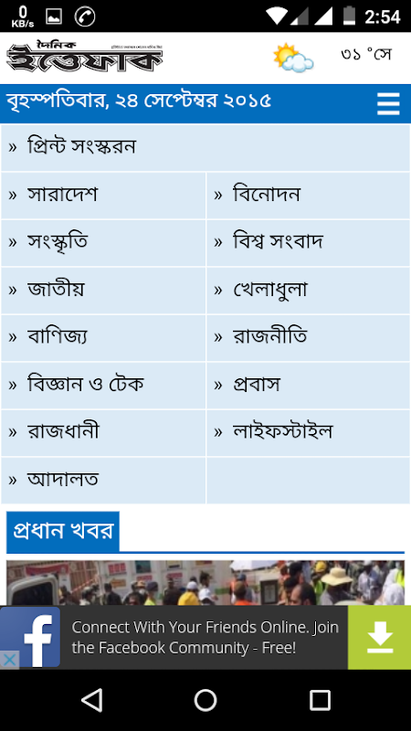 The daily Ittefaq is one of the most popular bangladesh news papper as well as bangladesh news bangla .In bangla news papers today Ittefaq has a huge numberof reader. Among oll bangla news paper or daily bangladeshi newspaper Ittefaq is one of the best one.This bagla news paper has their own bangla news website . their bangla news website is also great among all bangladesh newspapers online. There are so many bangladesh bangla news papers but this is unique among all newspapers of bangladesh. they publish bangla news all. This is most favorite news paper in online bangladesh news paper or bangladesg news paper as well as all news bangla paper. We used search as like bangla news pa , bangladesi news paper,daily bangladesh news papers,bangla news papers online, online newspapers articles ,how to read newspaper online ,top online newspapers ,online newspapers free ,mail newspaper ,breaking news ,news today,times ,express newspaper etc in several sites. In this prospective we made an application where user will get This daily Ittefaq in their mobile.
