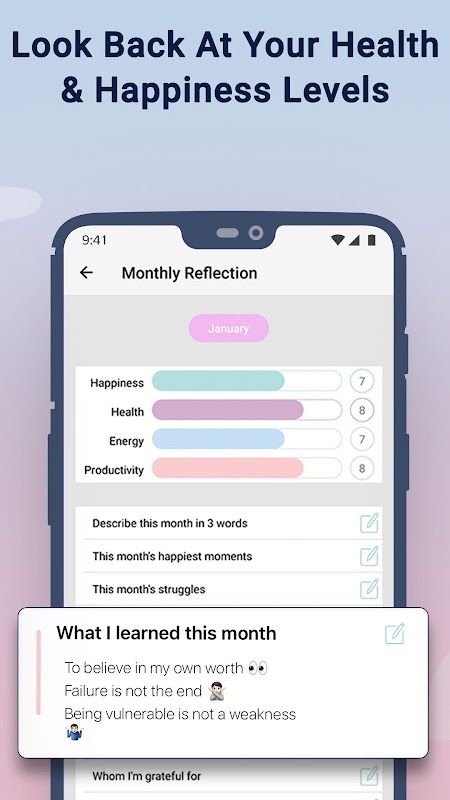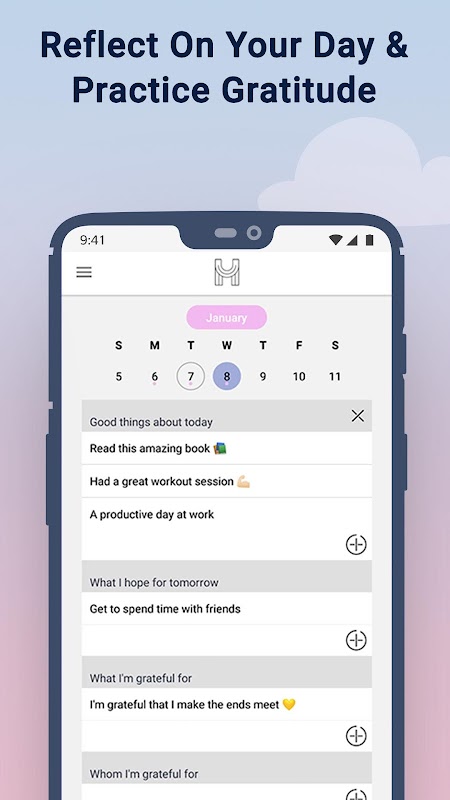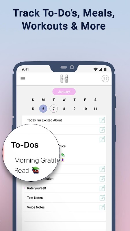 Mutluluk Planlayıcısı bir takvimdir ve yapılacaklar listesi uygulaması olumlu düşünme, mindfulness, minnet ve kendini geliştirme gücünü benimseyerek mutluluk yetiştirmeye yardımcı.