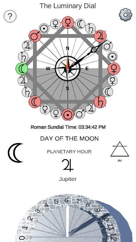 Bu, bir güneş saati ile aynı zamanda çalışan bir gezegen saatidir. Uygulamada 3 boyutlu güneş saati ve pusula güneş saati bulunmaktadır. Gezegenlerin her saatini güneş saatine göre yerel standart zamanda gösteren bir bildirim sistemi mevcuttur. Bildirim sistemi ayrıca gelecek zamanları gösterme özelliğine de sahiptir.